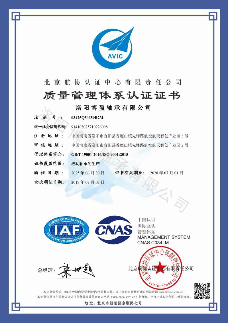 博盈軸承ISO質量管理體系認證書(中文版)
